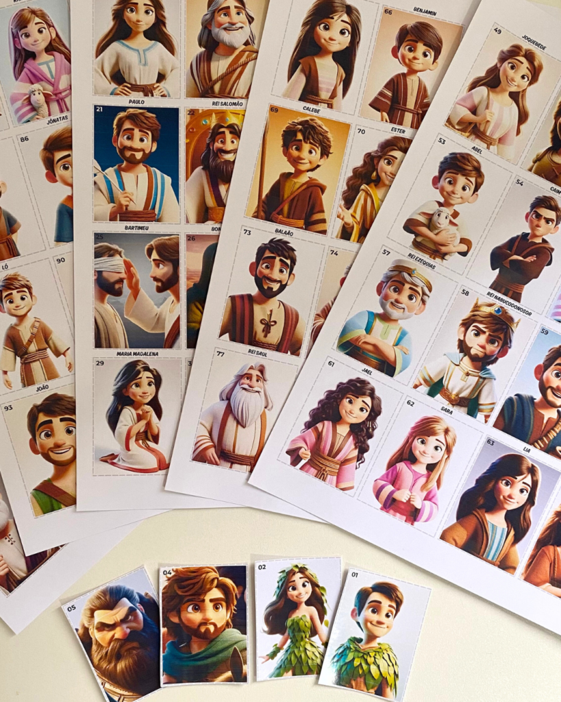 As figurinhas exclusivas deste álbum foram criadas com todo carinho para tornar cada momento da jornada de Jesus ainda mais mágico. Inspiradas no estilo Disney/Pixar, elas não são apenas ilustrações bonitas — são parte essencial da experiência!